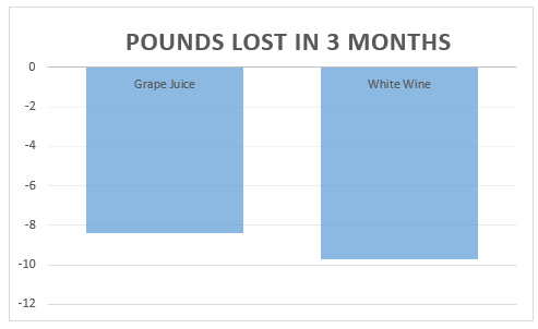 Below are the results from a fairly famous 12-week study in which females were put on a 1,500 kcal diet including either ~7 ounces of white wine or ~7 ounces of grape juice (which was around ~10% of their total calorie intake for the day.)