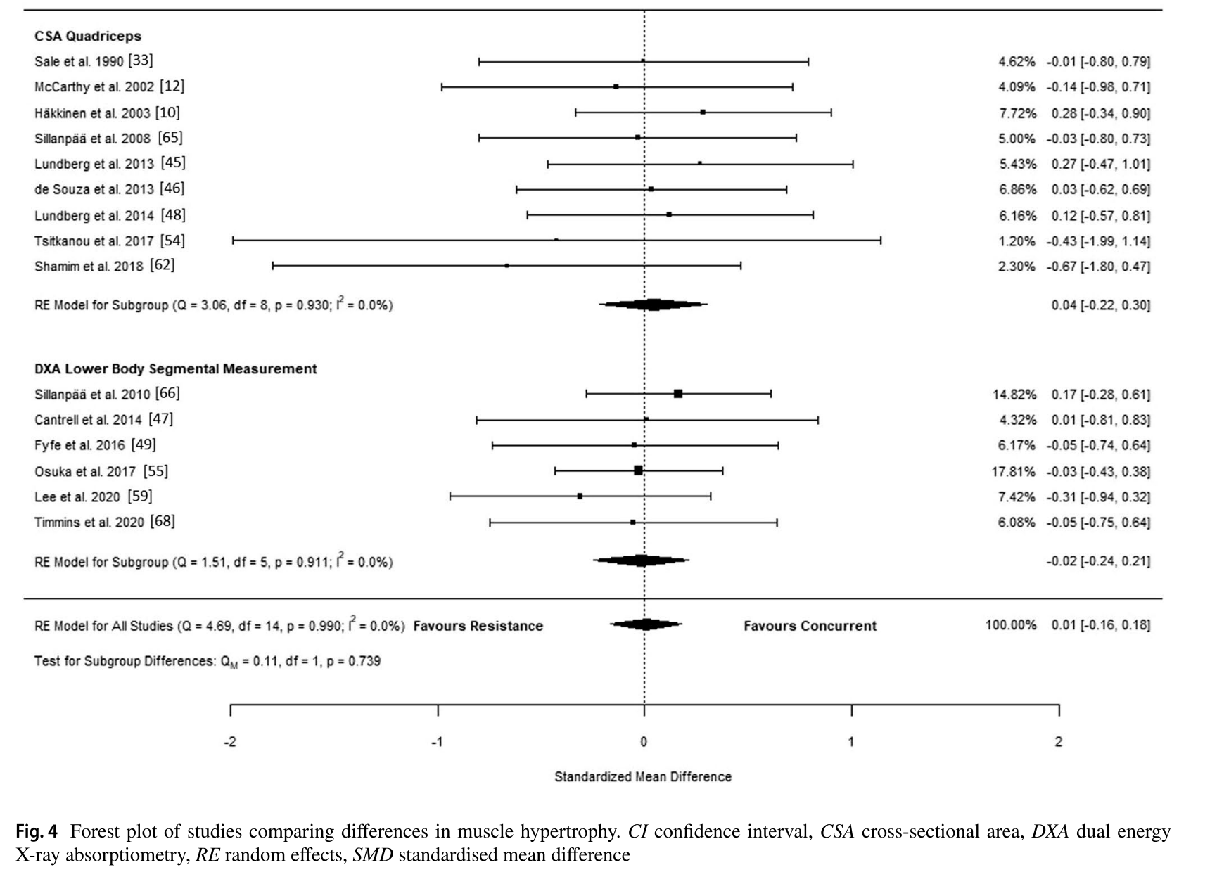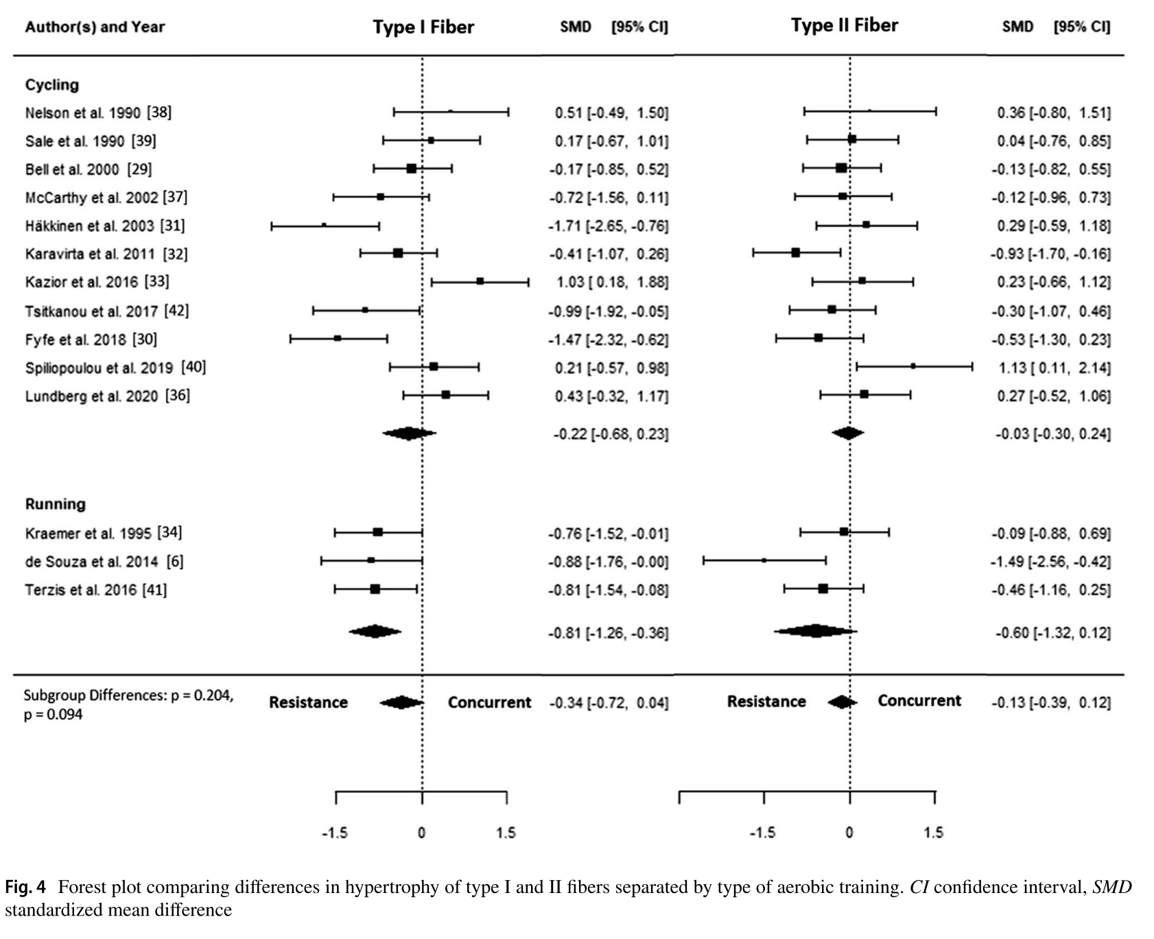 3. Lundberg, T.R., et al., The Effects of Concurrent Aerobic and Strength Training on Muscle Fiber Hypertrophy: A Systematic Review and Meta-Analysis. Sports Med, 2022. 52(10): p. 2391-2403.