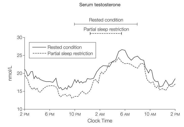 2. Smith, I., et al., Sleep restriction and testosterone concentrations in young healthy males: randomized controlled studies of acute and chronic short sleep. Sleep Health, 2019. 5(6): p. 580-586.